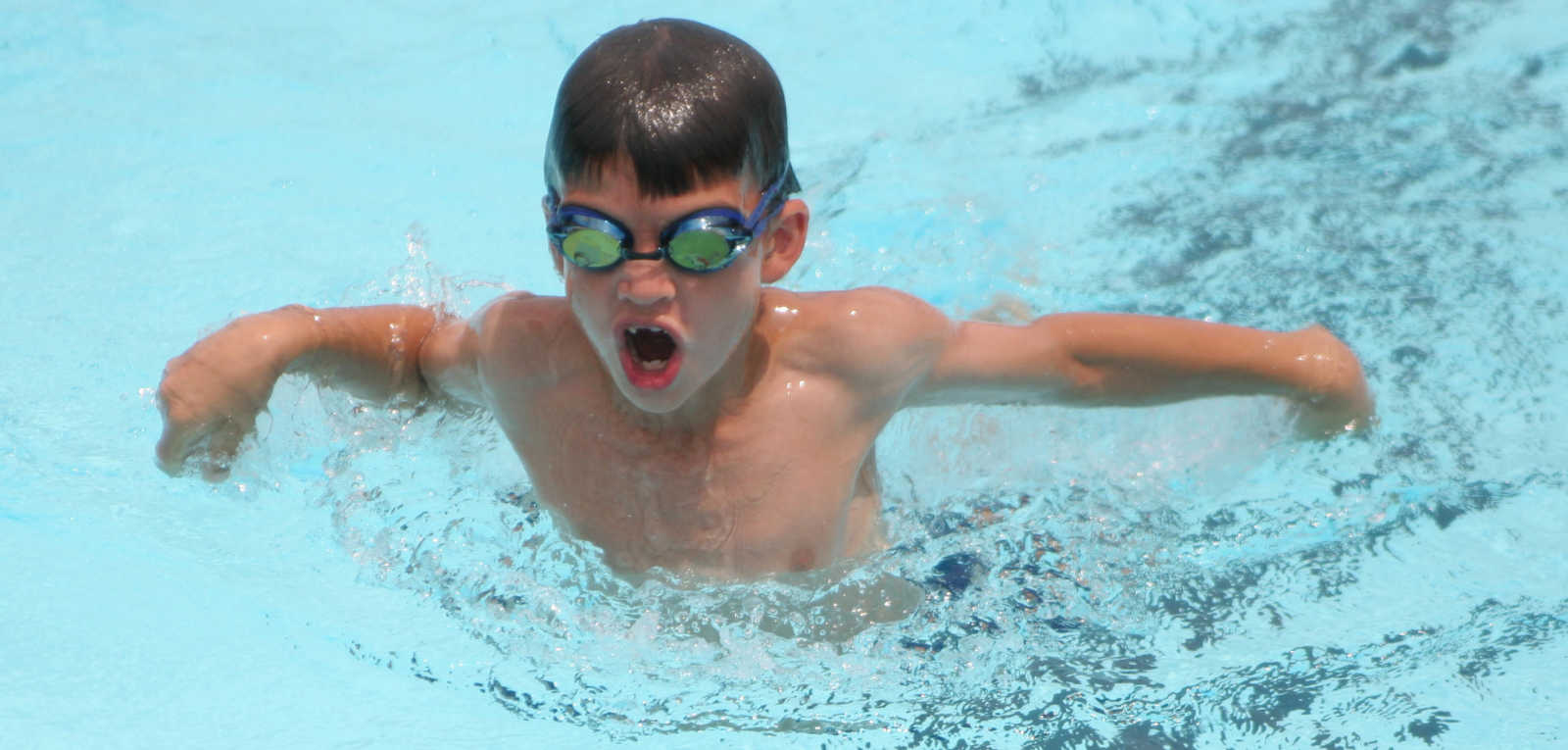 Seven year old Franki Fine, Nevada, nears the turn in a boy's individual 100 medly heat. -