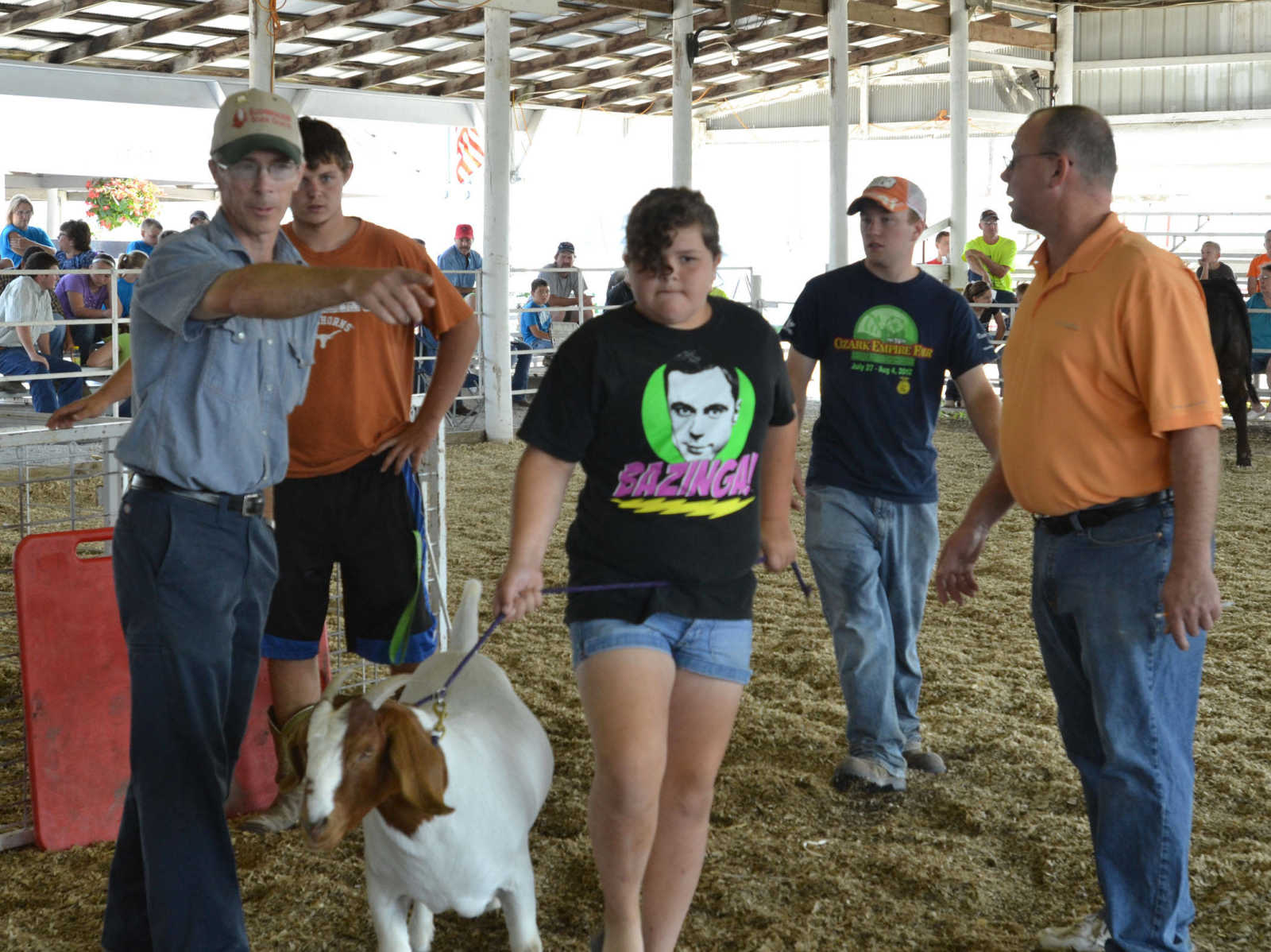 Keilah Cain, of Milo, brings in her goat for juding before the Tri-Co Livestock Judging Contest on Saturday. -