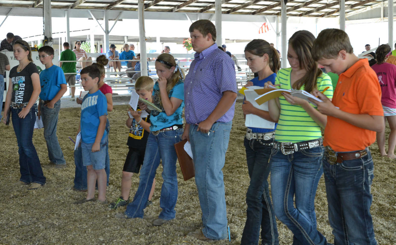 Area youth judge during the Tri-Co Livestock Judging Contest on Saturday. -
