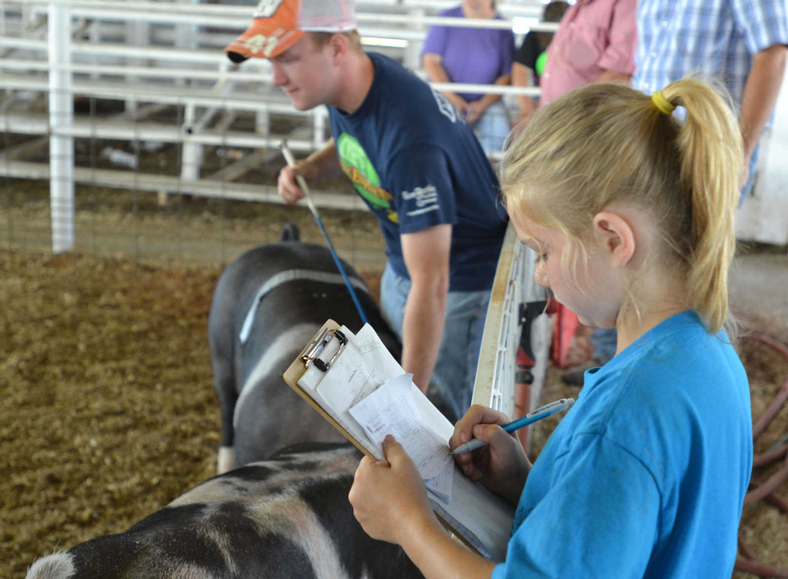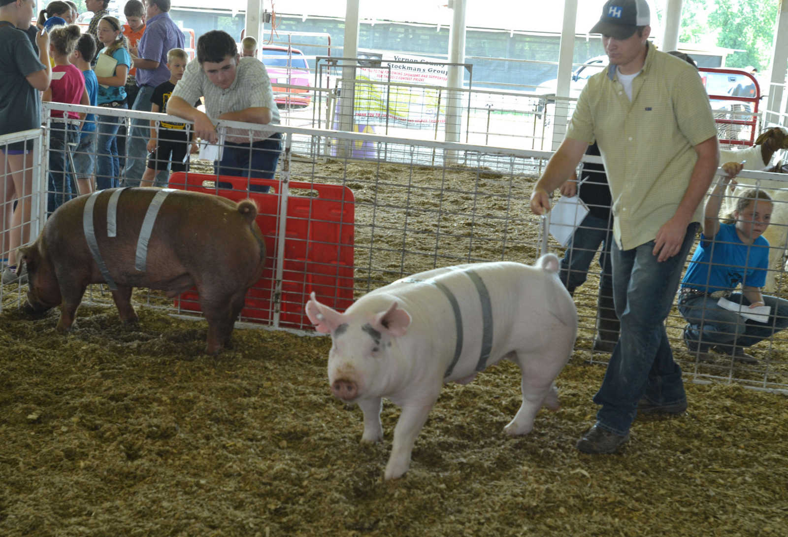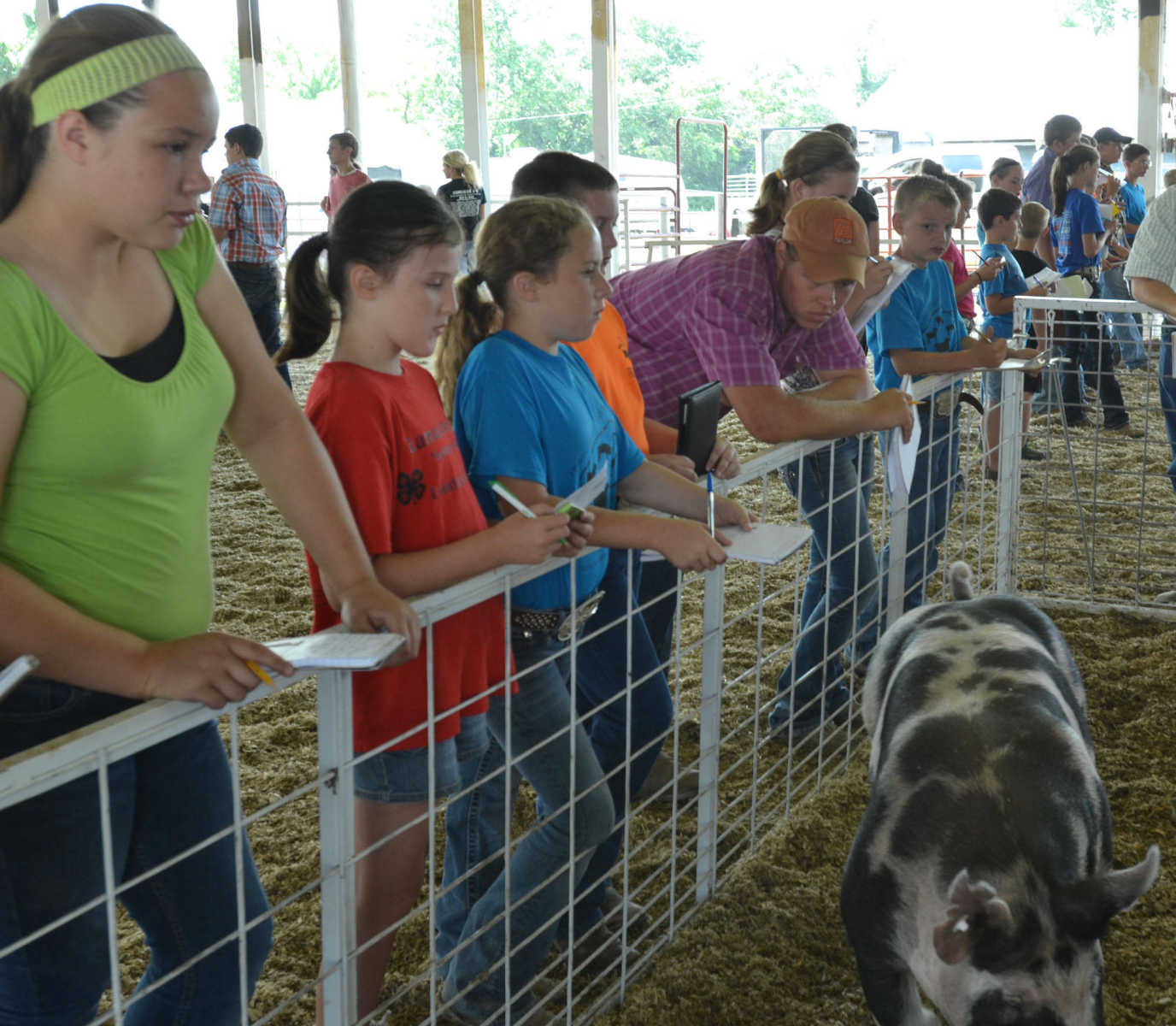 Area youth judge pigs in the Tri-Co Livestock Judging Contest on Saturday. -