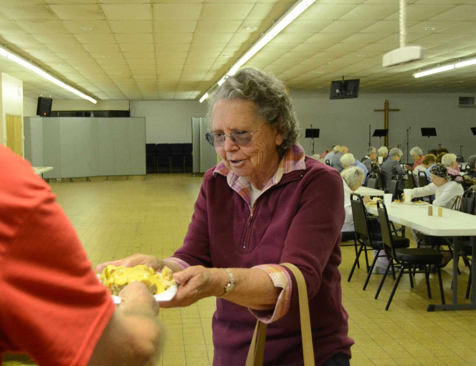 Amma Hastings picks up her potato at the Habitat for Humanity's potato luncheon at First Christian Church on Wednesday. -
