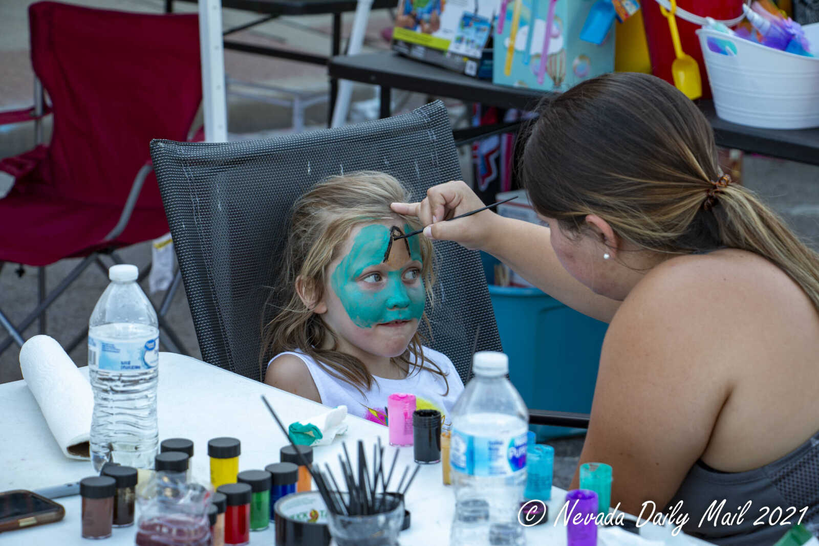 Naveah Turner, 6, gets her face painted at Bushwhacker Days on Saturday. -