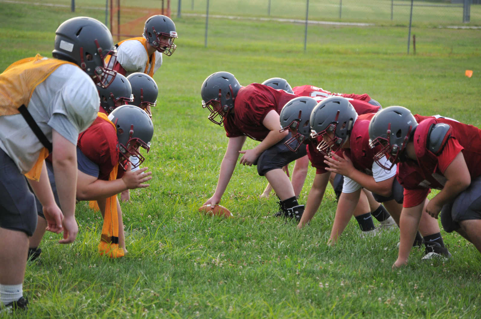 Nevada High players get lined up prior to the snap Wednesday morning, on the third day of the four-day team camp. (Matt Resnick | Daily Mail) -