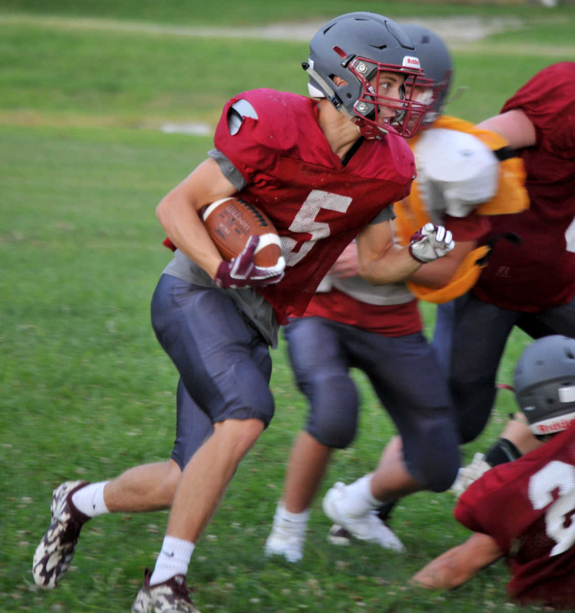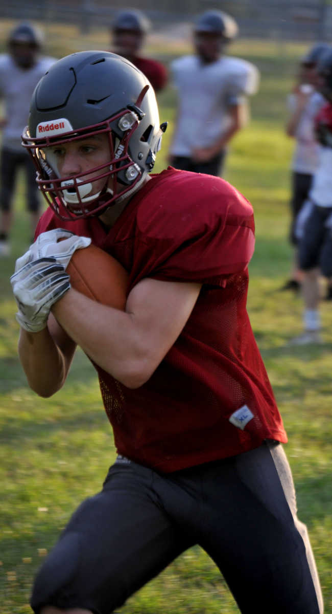 Kaden Denney takes a handoff and looks for an opening Wednesday. (Matt Resnick | Daily Mail ) -
