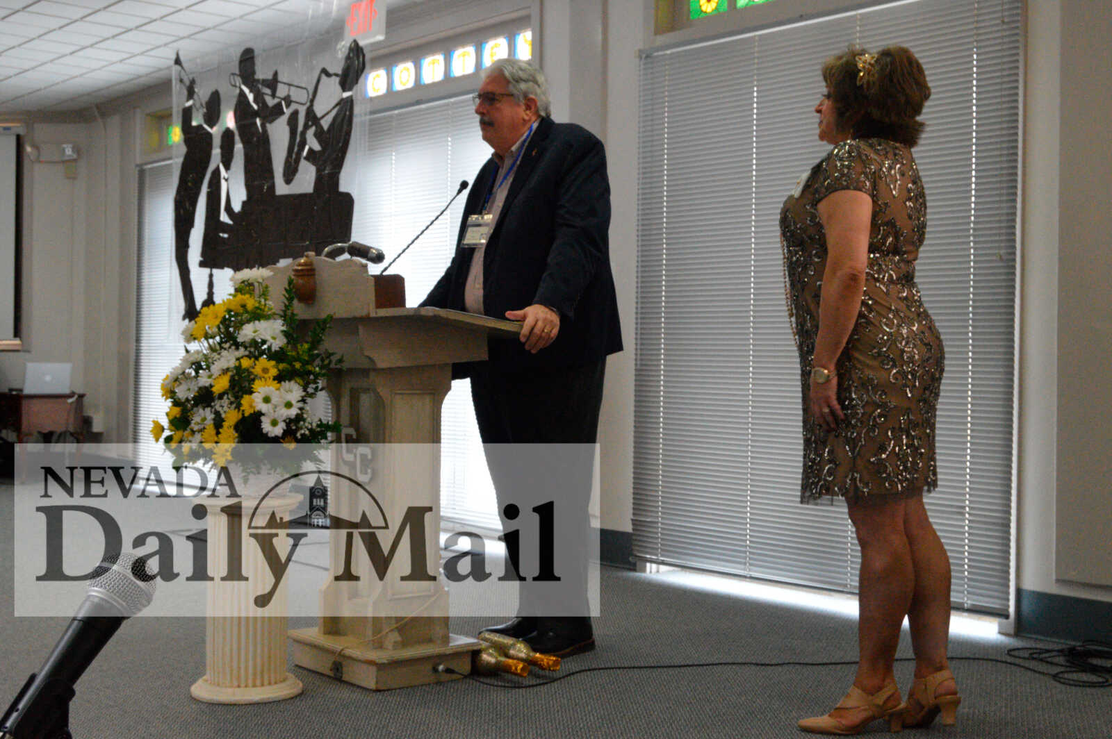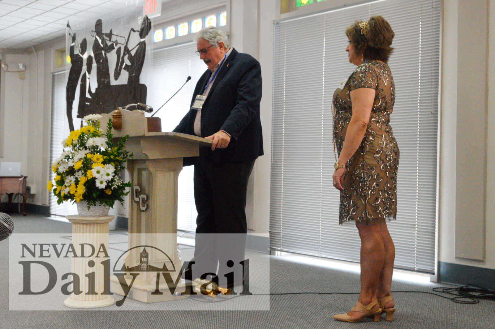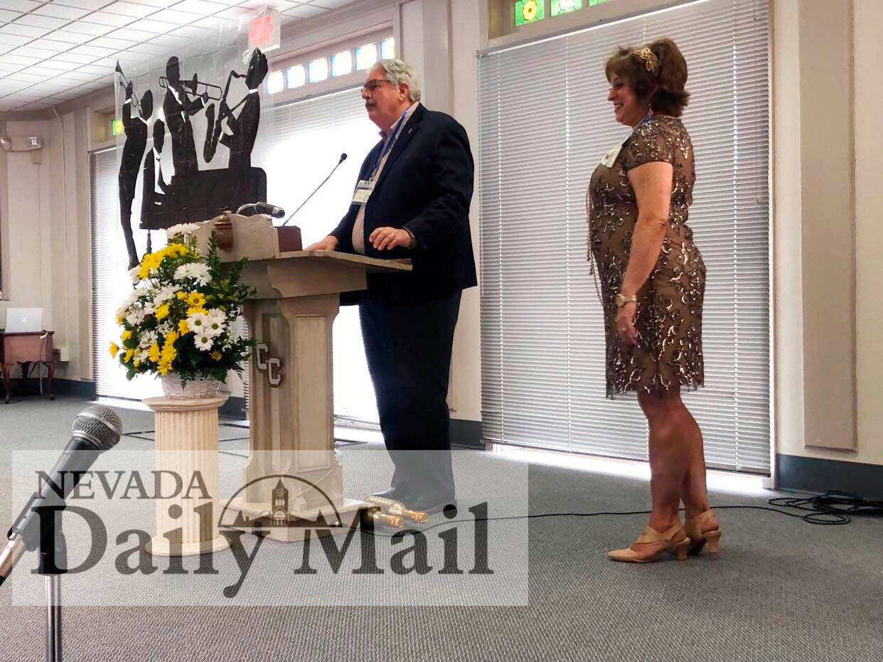 Nevada Mayor George Knox reads a proclamation declaring the 100 anniversary of P.E.O. Chapter DW while chapter President Deborah Ernsbarger looks on. (Photo by Sarah Haney | Daily Mail Editor)