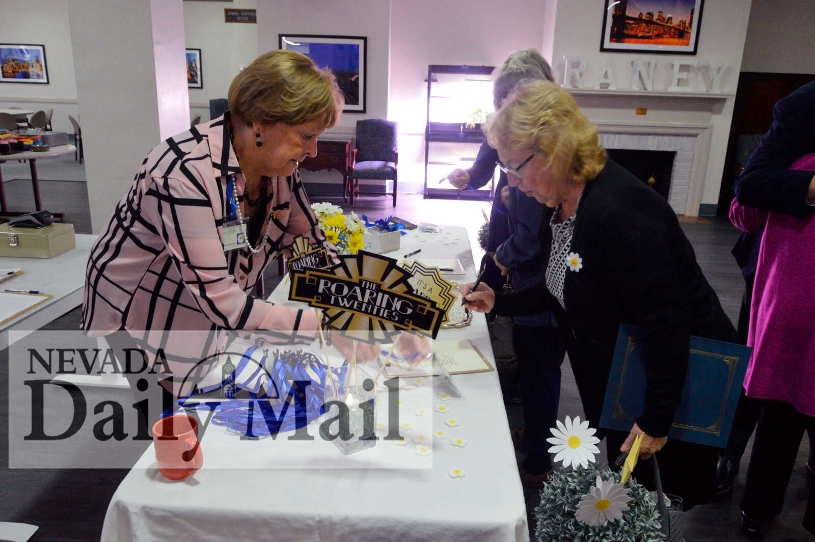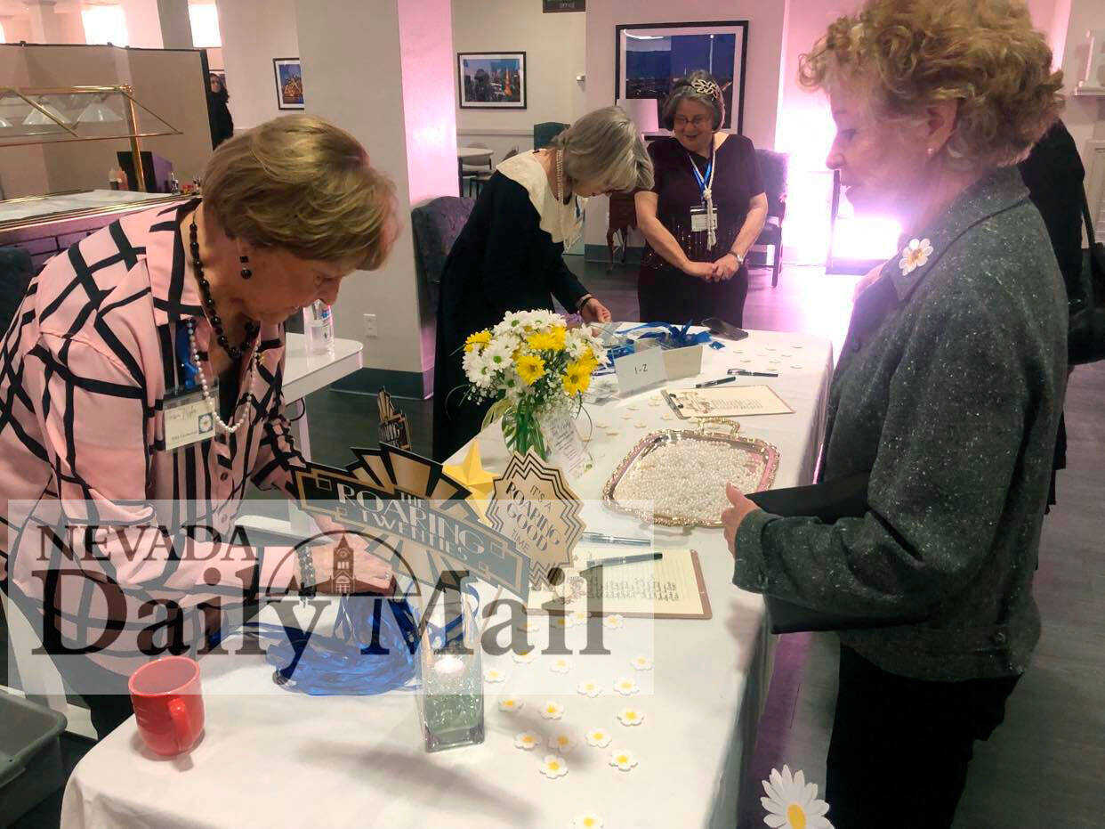 P.E.O. members check in as they arrive at the Centennial celebration. (Photo by Sarah Haney | Daily Mail Editor) -