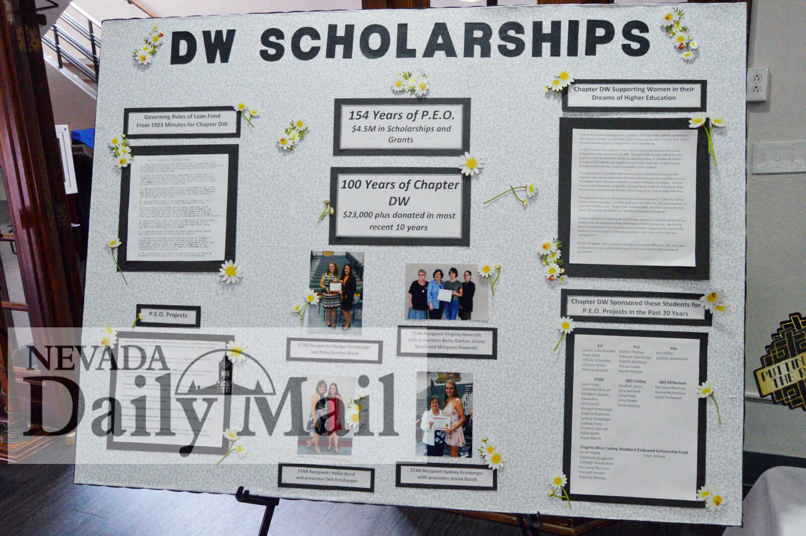 A display explaining the scholarship awarded by P.E.O. Chapter DW. (Photo by Sarah Haney | Daily Mail Editor) -