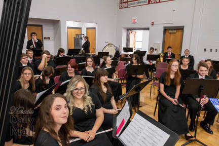 Trevor Olson awaits his cue from teacher Erin Townsend to begin the procession into the gym with his classmates. -