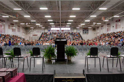 Assistant Principal Eric Schneider welcomes the students and their friends and family. -