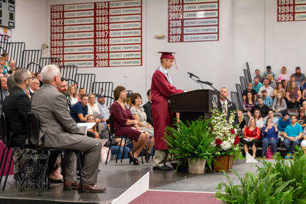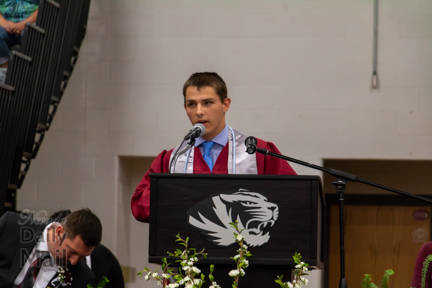 Clay Landoll, senior class vice-president, offers closing remarks during graduation at Nevada High School on Sunday -