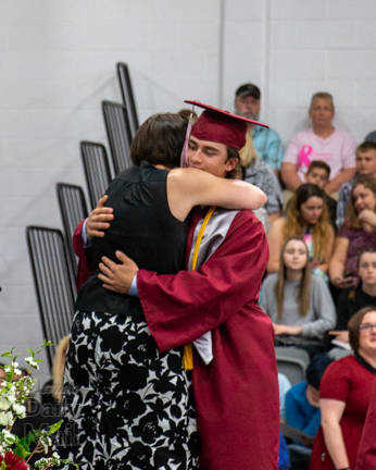 Schoolboard member Alyson Harder embraces her son Branden Harder during graduation at Nevada High School on Sunday. -
