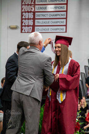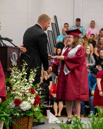 Ashton Pursley recieves her diploma from school board president Jay Sloniker during graduation at Nevada High School on Sunday. -
