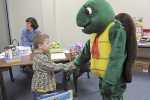 Franklin the Turtle, a favorite character in a popular series of books for children, stopped by Nevada Public Library's book fair last Saturday. Here he shakes hands with Jayme Jobe, 4. Franklin brought smiles to many faces during his two-hour visit, although not everyone was as comfortable shaking his hand as Jobe appeared to be. ... -