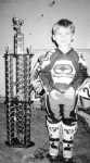 Austin Forkner, 5, of Richards, Mo., stands next to first-place trophy he won in the 4 to 6-year-old, 50 cc class at the first annual Show-Me Motocross Series. Forkner captured two firsts and two seconds in the series of four events which were held in Moberly, Carthage and twice in Buffalo, Mo... -