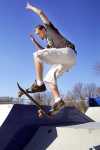 Nick Wright Derek McGuire 'ollies' off a ramp Tuesday afternoon. He came all the way up from Lamar, Mo., to spend part of his spring break at the Nevada skate park. Micah Koons, 14, catches some big air off a ramp at the park that same afternoon, while enjoying his spring break... -