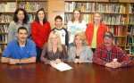 By Ralph Pokorny Tuesday afternoon, Nevada High School senior Jenny McCullough signed with Longview Community College to play volleyball. McCullough will be an outside hitter at Longview. Front row: Kelly Daniels, Longview Community College, Jenny McCullough, Marie Wessley and Andy McCullough. Back row: Stephani Beckett, Sharla Wilkerson, NHS volleyball coach, Dalton Wessley, Brittany Crockett and Billie McCullough... -