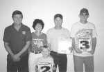 Submitted Photo Mike Forkner (second from right), Andy Collins (right) and Austin Forkner (front) stand with sponsors Clyde and Terri Sheperd of Shep's Dealership in Oklahoma (left) after being rewarded for their finishes in the Oklahoma State Motorcross Championship. The Forkners are from Richards and Collins is from Moundsville. Mike Forkner finished seventh in his class this season despite missing two races, Austin Forkner finished second in his class and Collins finished third in his class... -
