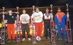 The season championship races were held on Aug. 28. Track champions for this year are: (from left) Jack Simmons of Erie, Kan. in the Late Model division; Denny Chrisenbery of Bronaugh in the Street Stock division; Vince Barker of Nevada in the Factory Stock division; Kevin Morrow of Nevada in the Modified division and Melvin Baxter of Milo in the Mini-Stock division. Simmons, Chrisenbery and Morrow repeated their wins from last year... -
