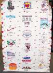 This full-size quilt is made entirely of T-shirts promoting blood donations by the American Red Cross. Aileen Brothers made the quilt. The patterns offer messages of thanks, a message to be prepared, or were printed with a special message to commemorate a special event. ... -