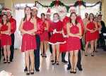 The Nevada High School Soundsational Singers perform a wintry spectacular of dance and familiar tunes for the members of the Nevada/Vernon County Area Chamber of Commerce, Friday, during the chamber's annual meeting at the Nevada Country Club. The festive performance brought cheers and an occasional laugh from the crowd as musical appearances were made by some of the most famous of Christmas characters, including Santa, Miss Susie Snowflake, Rudolf the Red-Nosed Reindeer, and Frosty the Snowman, who sang "Blue Christmas" to his girlfriend, who's not around for the holidays.. ... -