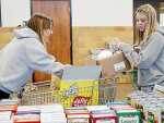 Nevada's National Guard Armory was a busy place Monday morning for the annual distribution of toys by the Vernon County Ambulance District and food baskets by Community Outreach. Above, Tabitha Pitts, left, and Kara Foster gather a basket of food. Meanwhile, Barbara Long, Community Outreach director, presented a gift to Larry Rose (not pictured) in appreciation of his many years of service helping with the annual food distribution. ... -