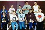The winners of the Knights of Columbus free throw contest Saturday for boys and girls ages 10-14 were: (front from left) girls winners Taylor Thomas, 10; Ashley Coffer, 11; Emily Mader, 12; Heather Thomas, 13; and Kadee Hughes, 14. (back) boys winners Seth Chanove, 10; Isaiah Colopy, 11; Domonic Habjan, 12; Kyle Schultze, 13; and Cameron Cartwright, 14. The winners will compete in the district competition which will be held at Nevada Middle School on Feb. 5...