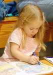 Five-year old Lexi Hekadon brought her crayons and coloring book for her entertainment during Saturday night's basketball game between the Nevada Tigers and the Pleasant Hill Roosters. -