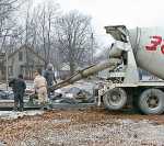 Workers pour concrete at the site of the new Family Video store under construction at the corner of Ash and Austin in Nevada. -