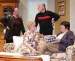 Actors from the Community Council on the Performing Arts prepare for the opening of this weekend's play. Sitting at left is Edi Gragg, who plays Mildred, sitting at right is Lynn Ewing, who plays George, standing at left is Debbi Scotten, portraying Ethel, and standing at right is Mike Besses, playing Humphrey. The British comedy, "While the Cat's Away," will show this Friday, Saturday and Sunday at the Fox Playhouse in Nevada. Show times are 8 p.m. on Friday and Saturday and 2 p.m. on Sunday... -