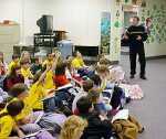 Detective George Enke, Nevada Police Department, spoke to the Look Before You Leap Club at Truman Elementary Tuesday. Enke gave a talk on drug awareness and what to do in dealing with people who might offer drugs. The Look Before You Leap Club has a total of 300 members, 126 attended Tuesdays activities which included watching a video, singing the group's song and saying the group's pledge. Tuesday's activities were moved from their regular time because of spring break... -