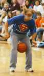 Nevada High School teacher Jared Brown tries to hop with a basketball between his legs while wearing goggles that simulate what it feels like to be legally drunk. Brown and fellow teacher James Kinder competed in a race that forced contestants to do a variety of things while wearing the goggles, designed to educate students on the difficulty of normal activities while impaired by alcohol. Students from each grade also participated in the race during the Renaissance Assembly Wednesday... -