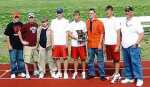 Calvary Christian School finished the 2005 track season May 6-7 in Joplin at the Missouri Christian Schools state tournament. Participating were, from left, Michael Morris, Assistant Coach Tim Morris, Joel Morris, Tim Wallace, Scott Borders, Devan Scougal, Tyler Borders and Coach Jim Borders. ... -