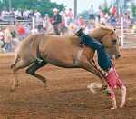 Eighteen-year-old Jessie Moore's bareback bronc ride came to a sudden end Thursday with no score when she was bucked off during an exhibition ride in preparation for tonight's bareback bronc competition at the Vernon County Youth Fair's Little Britches Rodeo. Moore, who is from Sheldon, was able to walk from the arena. Rodeo competition starts at 8 p.m... -