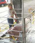 Shelby Wilkins, 10, washes her Chester in preparation for the Swine Barrow show at the Vernon County Youth Fair Thursday. -