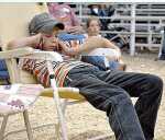 Nearing the close of the auction marking the end of the Vernon County Youth Fair on Saturday, at about 11:30 p.m., Tanner Charles was found fast asleep despite the noisy auction floor. His mother said that he was "exhausted." -