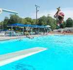 A diver performs a topsy-turvy feat from the diving board at the (Izaac) Walton Family Aquatic Center Tuesday afternoon. Many patrons visited the facility on Tuesday, with temperatures in the mid-90s. -