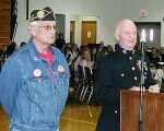 Students and faculty at Nevada High School conducted a special ceremony in honor of all veterans who have served the country, at 11 a.m., Friday, in the gymnasium at the school. During the event, speeches and presentations were made. Above, State Representative Barney Fisher presents Ron Brown a copy of a Missouri House of Representatives Resolution honoring underage veterans, those veterans who bent regulations to enlist in the armed services. ... -