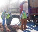 City public works employees Tim Snodgrass, driving the truck, Vickie Jordan, Mike Marbough and Justin Switzer use a giant vacuum apparatus to pick up leaves along Washington Street Thursday afternoon. The leaf pick-up, an annual service of the city of Nevada, was a bit delayed this year due to inclement weather that struck as leaf pickup was beginning; however, crews reported being about halfway through the northwest quadrant of the city. ... -