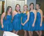 Nevada High School's Soundsational Singers were busy Tuesday afternoon, delivering singing valentines to people throughout the Nevada area. The musical greetings, becoming an annual tradition in Nevada, are a fund-raiser for the group. Below are five members of the group -- from left, Stephanie Bussee, Keyaira Lyda, Jordan Bell, Sara Chrisenberry and Tasha Jones-Smith -- who brought one of their musical messages to the offices of the Nevada Daily Mail for employee Debbie Swait... -