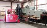 The semi-trailer groaned as the bed of the trailer raised up as it was relieved of the 43,600 pounds of precision equipment that weighed it down. Hal Fortner was at the controls of a custom-built forklift that hoisted the Landis Tools precision roll grinder up far enough for the semi to drive out from under it. To counter-balance the heavy load Forkner extended the rear of the machine several feet... -