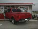 Arica Ebersold, driving a red Ford pickup, tried to avoid a car that pulled out in front of her onto Austin Boulevard Thursday afternoon. Ebersold swerved to avoid hitting the car and the pickup jumped the curb and smashed into the MJ's Coffee Rush building. ... -