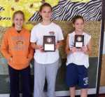 The Nevada Lady Tiger golf team held its end of the year banquet at Greenfield's Oct. 23. (Clockwise from above) State qualifiers Heather Klingaman, Lakyn Mansfield and Aubrey Jones along with coach Brian Leonard; Leonard gives Jones the Lowest Scoring Average award; Leonard gives Klingaman the Fighting Lady Tiger award... -