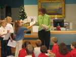 Second, third and fourth grade students from St. Mary's School visited the First Christian Church Widow's Group's Christmas dinner at Nevada Sunshine Tuesday. The group sang Christmas carols to entertain the widows before lunch was served. Vernon County Ambulance District members also stopped by to pick up toys the widows had collected to donate to the VCAD's annual toy drive... -