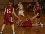 Nevada's Heather Thomas (21) passes to teammate Jessie Norman (15) after hitting the deck for a loose ball during Thursday's 40-8 win over Neosho in freshman basketball. Thomas outscored the Lady Wildcats by herself, tallying 15 in the victory. -