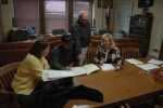 The Vernon County Commissioners meet with the road and bridge foreman and the county clerk during budget deliberations this morning. From left: Vernon County Clerk Tammi Beach, road and bridge foreman Ron Sloan, Northern Commissioner Neal Gerster and Presiding Commissioner Bonnie McCord... -