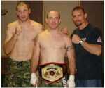Nevada-based submission fighters Noah Weber (left) and Tyson Rainey (center) won bouts in Chicago recently at an FCE event there. Rainey came home with the welterweight title after submitting Decarlo Johnson in the second round of the co-main event. Weber defeated Israel Echevarria earlier on the same card with a second-round TKO. The two fighters are members of the Springfield Fight Club, and will both be in action again Saturday in Wichita, Kan...