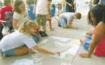 Harry Potter may have cast a spell on the weather Friday to keep the forecast rain away allowing Michelle Cowles, left, Katy Super and Marissa Muro, right, to work on their second place sidewalk art project during activities scheduled by Cavener's Library & Office Supplies to keep Harry Potter fans entertained until "Harry Potter and the Deathly Hallows" was released at 12:01 Saturday morning. ... -