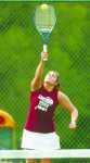 Elise McNeil of Nevada High School serves during her match with Webb City's Lynsey Setser Friday afternoon. -