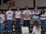 As the sound of the military helicopter leaving throbbed in the sky above the Northeast Vernon County R-1 gymnasium, Charles Naas, R-1 superintendent, led in a moment of silence in memory of those veterans who gave their all for our freedom. Presentation of Colors was given by NEVC honor students Drew Hoagland, Courtney Justice and Taylor Highfield, after which Darcy Scotten, NEVC Student Council president, led in the "Pledge of Allegiance" to the flag and the high school choir sang the national anthem.. ... -