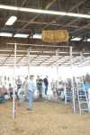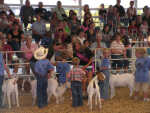 Vernon County Youth Fair Queen Katlyn Douglas and Princess Cara Clow hand out ribbons, Wednesday, to the Peewee Class goat competitors. These competitors are ages 5 to 7 and are learning their way around the show ring. -